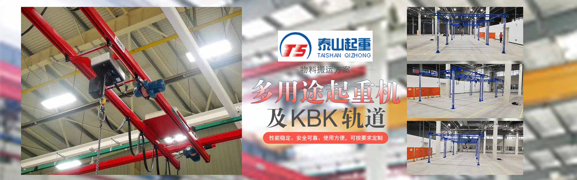 江陰市泰山起重設備有限公司座落在富庶的現代化港口城市——江陰市南閘鎮工業園區,緊靠錫澄高速,錫澄路,北依江陰港區,貫通滬寧高速的世界第四、中國第一的江陰長江大橋,穿越而過,飛架南北,高速至上海虹橋機場僅2小時,南又緊靠正在建設中的無錫國際機場,交通便捷,環境優美?! ”竟緦I為壁行式懸臂起重機、KBK軌道,鋼絲繩電動葫蘆、環鏈葫蘆、KBK組件,梁式起重機、電動旋臂起重機等配套起重機械配件,主要產品有:KBK軌道,梁吊掛裝置、環鏈葫蘆,KBK組件,手動式小車、行車走輪、電纜滑車等起重機配件,同時可提供起重設備的安裝、維修、為客戶提供全方位的技術咨詢等各項服務。  公司的管理將“以人為本”作為宗···...